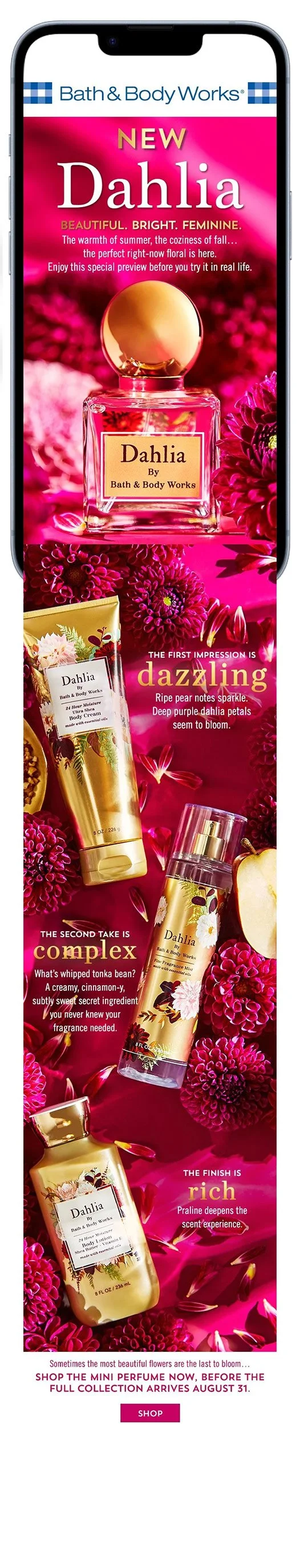 Preview email showcasing our newest fragrance launch, Dahlia.
