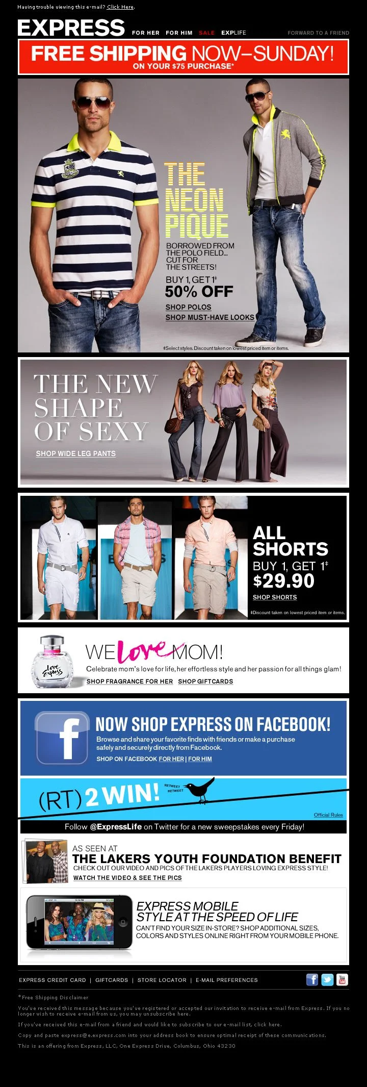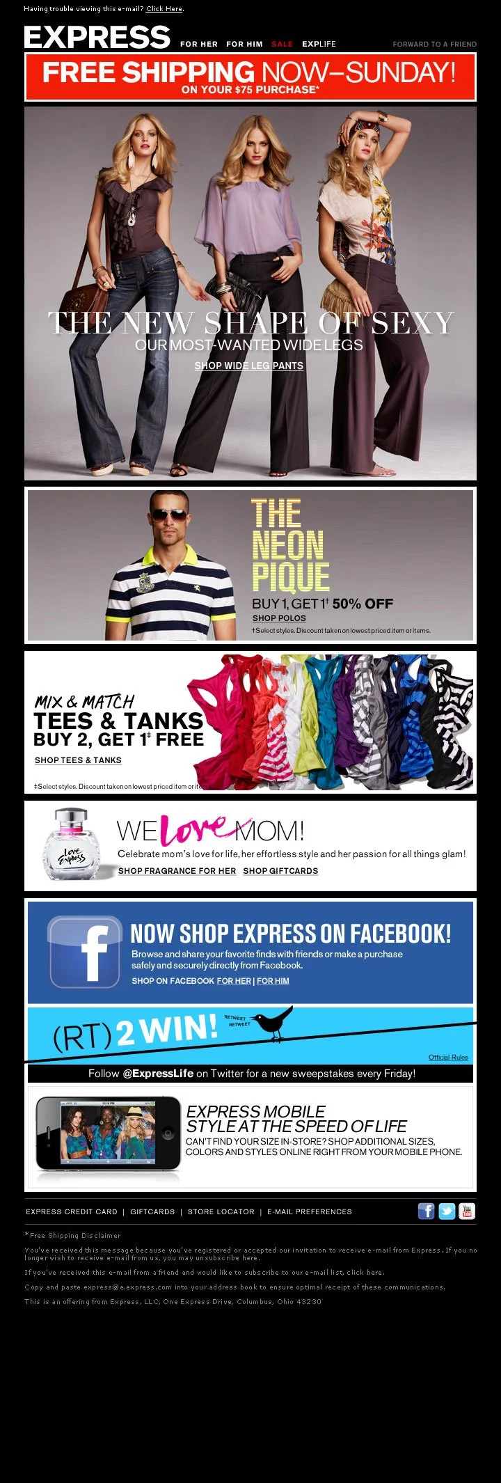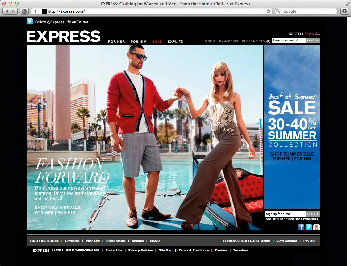 During my tenure at express I was responsible for all web design covering the website, emails, and display banners.